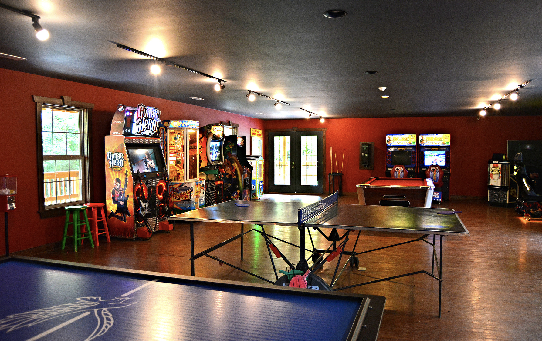 - Large upstairs game room