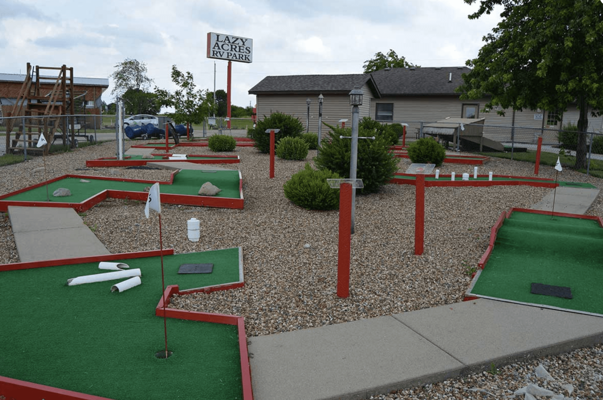 Treat your family to the variety of recreation activities at Lazy Acres, including frisbee golf, basketball, sand volleyball, miniature golf, horseshoes, and custom playground equipment. Take a short drive for a look at Iowa’s largest frying pan, which happens to be 14 feet tall. Or step back in time at the nearby Amana Colonies to enjoy local foods, furniture, art, and more.