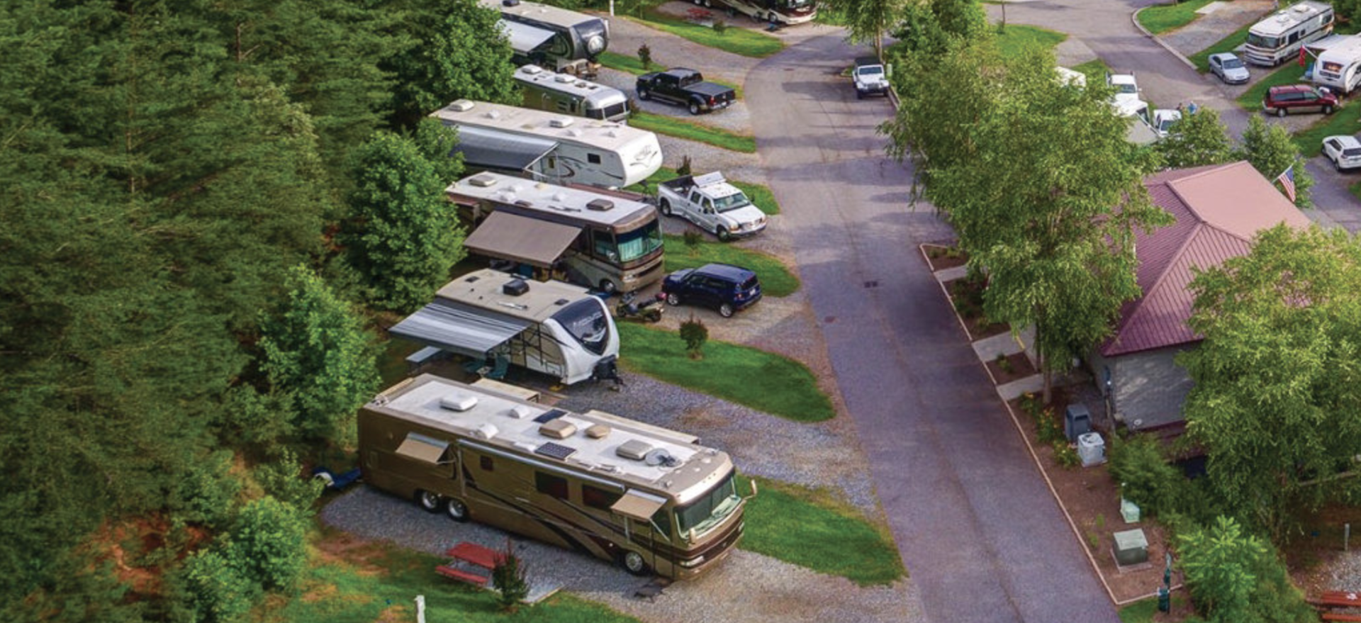 Surrounded by the Blue Ridge Parkway and the Smoky Mountains, The Great Outdoors features a banquet hall, lightning-fast Wi-Fi, and a fenced off bark park for your furry friend. You’ll soon see why it’s a favorite spot for rallies and family gatherings. If you’re in the mood for a day trip, Asheville’s just an hour away, and Atlanta is only two hours south.